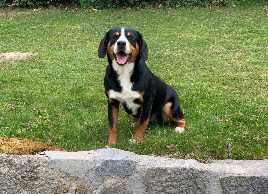 Nelly ist ein Swissydog aus einer Verpaarung Entlebucher & Appenzeller.